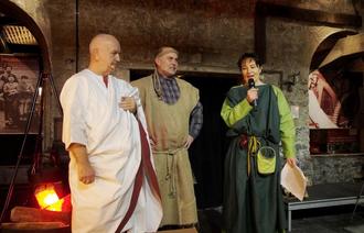 Wie bekommt man Germanen, Römer und Kelten an einen Tisch? Natürlich durch einen Wettkampf! Im Stöffel-Park wurde nun aber nicht mit Schwertern, sondern kulinarisch miteinander gerungen. Und die Verkoster - die Gäste in der Alten Schmiede - urteilten über Sieg und Niederlage. Bei dem „Sigambrer-Abend“ ging es um die Wurzeln der Deutschen. Über Römer wird viel und Heroisches erzählt, aber wer war ihr Gegenüber und somit Vorfahre der hiesigen Bevölkerung? Das Thema beschäftigte Uwe Steiniger, der damit auch Sabine Dörner (Mitherausgeberin des Wäller Magazins „Hannes“) begeisterte. Beide haben mit Martin Rudolph vom Stöffel-Park schon die Kochshow mit Clemens Wilmenrod II. in der Sparte „Kultur & Kulinarik“ im Stöffel-Park umgesetzt. Und nun war Premiere des Sigambrer-Abends, für den der Eventservice DD Die Idee das Menü kreierte: Es gab von der Vorspeise bis zum Dessert alles in zwei Varianten: nach römischer und germanischer Art. Doch zunächst preschten die Kelten vor: Auszüge aus dem sich im Entstehen befindlichen Musicals „Druidenstein“ waren zu hören, schön untermalt durch eine stimmungsvolle Leinwandpräsentation. Nadine und Thorsten Uebe-Emden machen sich für das Projekt stark. Mitwirkende waren außerdem der „Römer“ Manfred Knobloch, bekannt als Limes-Cicerone in Hillscheid, Uwe Steiniger als Germane - und der Autor Dr. Matthias Heidrich („Der Westerwald... als wir Germanen waren“) sorgte für Infos... Ein anregender und geschmackvoller Abend! Mehr dazu: www.stoeffelpark.de (Neuigkeiten).