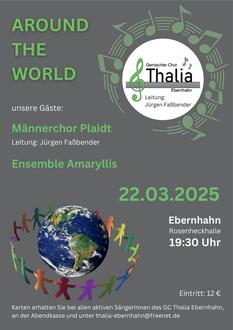 Wir, die Sängerinnen und Sänger, laden herzlich zu unserem Frühlingskonzert unter dem Motto "Around the World" ein!