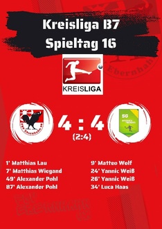 Nach dem Weckruf in der Halbzeit zeigte der FSV in der 2. Hälfte eine deutlich engagiertere Leistung und drückte den Gegner sofort in die eigene Hälfte. Alex Pohl sorgte in der 49. Minute für den frühzeitigen Anschlusstreffer. In der Folge wurden viele Großchancen ausgelassen oder das Aluminium wurde getroffen. Es dauerte bis zur 87. Minute ehe wieder Alexander Pohl den verdienten Ausgleich erzielte. Auch danach drückte man auf den Siegtreffer, doch es sollte nicht mehr reichen.
