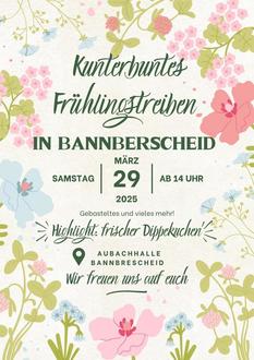 wir laden herzlich zum "Kunterbunten Frühlingstreiben" am Samstag, den 29. März 2025, ein! Ab 14 Uhr verwandelt sich unser Dorf in einen lebendigen Marktplatz voller Kreativität und Frühlingsfreuden.
