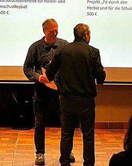 Trainer Erwin Hausen erhält den symbolischen Scheck aus den Händen von Landrat Achim Schwickert