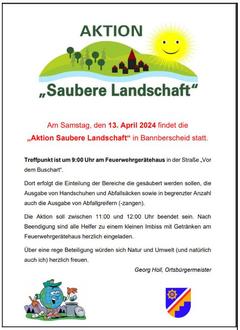 Auch in diesem Jahr beteiligt sich die Ortsgemeinde Bannberscheid an dieser Aktion des Westerwaldkreises und des WW-Abfallbetriebs (Näheres siehe nachstehende Ankündigung). Über eine rege Beteiligung würde ich mich sehr freuen.