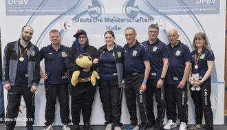 Teilnehmende an der DM Halle 2025 des BSC Wirges v.l.n.r: Marco Korbach, Stefan Gilges, Vanessa Hardt, Nadine Michels, Gerhard Kabel, Bernd Korbach, Harry Brunner, Jasmin Schmidt