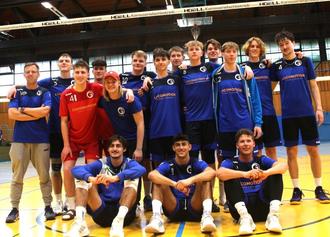 U 20 Südwestdeutscher Meister 2024: TGM Mainz-Gonsenheim mit Simon Trefflich (Nr. 4, hinten rechts), von den Westerwald Volleys. Verletzungsbedingt fehlt Pablo Ferdinand von den Westerwald Volleys