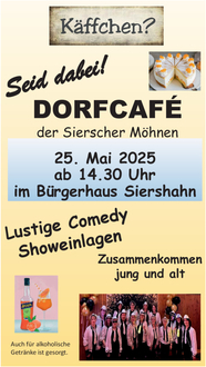 Wichtiger Hinweis für die Besucher des Dorf-Cafés der Möhnen am 25. Mai 2025 im Bürgerhaus in Siershahn: