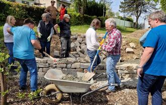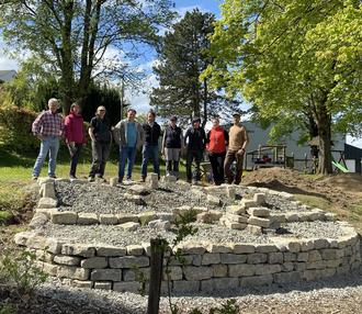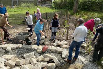 Das war ein wirklich toller Workshop. Wir, 16 Mitstreiterinnen und Mitstreiter, haben unter Anleitung von Susanne Piwecki und Mirjam Hensel (Wilde Hilde Naturgartenplanung) nicht nur Steine gesetzt und Schotter verteilt, wir haben auch wertvolle Tipps zum Trockenmauerbau und zur Anlage von Naturgärten erhalten. Das Ergebnis ist klasse geworden, die Trockenmauer passt wunderbar zum Naschgärtchen und zur Blumenwiese.