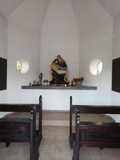 Bei schlechtem Wetter feiern wir die Andacht in der Friedhofshalle.