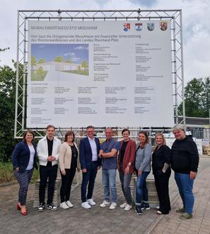 v.l.n.r: Bürgermeisterin Alexandra Marzi, KiTa-Koordination VG Wirges Jannik Quirmbach und Betina Schmidt, Ortsbürgermeister Marco Geibert, 1. Beigeordneter Jens Luber, stellv. KiTa-Leitung Moschheim Annika Costa, KiTa-Leitung Moschheim Michaela Hoffmann, KiTa-Leitung Ötzingen Dorota Kwidzinski, KiTa- Koordinator Bistum Limburg Thomas Baecker