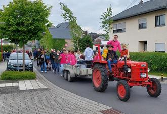 Der Kirmesumzug im Anschluss an den Festgottesdienst war mit rund 70 Personen und geschmückten Bollerwagen des Projektchores und des Berschender Allerleis so groß wie schon lange nicht mehr und alle hatten unterwegs viel Spaß.