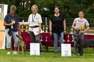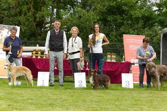Sieger bei den Großrassen in der Klasse „Best Puppy“ wurde der Silken Windsprite Rüde Blue Mist Sean vom Wäller Wind (Besitzerin Maria Lames, Züchter: Amy, Jessica und Valerie Stier, USA). In der offenen Klasse der Großhunde siegte die Silken Windsprite Hündin Wanda (Besitzerin Sina Dettweiler, Züchterin Ruth Dettweiler, Tübingen).