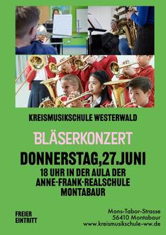 Am 27.06.2024 veranstaltet die Kreismusikschule in der Anne-Frank-Realschule in Montabaur ein Bläserkonzert. Der Musikverein Helferskirchen tritt mit drei Ensembles bei dieser Veranstaltung auf und freut sich auf viele Zuhörer.