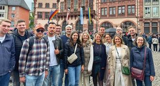 Nach dem ersten gemütlichen Abend in den Familien stand am Samstag unsere Gemeinschaftsfahrt an: Es ging nach Frankfurt am Main.