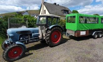 Von hier starten wir zu einer von Traktoren gezogenen Planwagentour durch die Weinberge, selbstverständlich mit Verpflegung (Dauer ca. zwei Stunden).