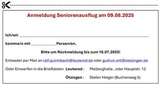 | Abfahrt: | Ötzingen 09:45 Uhr Kindergarten |