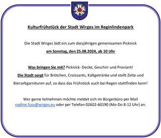 Die Stadt Wirges lädt ein zum diesjährigen gemeinsamen Picknick