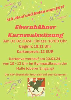 Ebernhähner Karnevalssitzung - Kartenvorverkauf am 20.01.2024