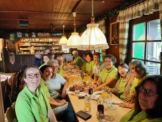 Wir ließen die Biker passieren und schraubten uns gemächlich weiter nach oben zu unserem Ziel, dem Köppel. Oben angelangt wurden wir freundlich von der Wirtin begrüßt und mit Getränken und gutem Essen versorgt. Obgleich wir den Köppel mit seinen 540 Metern erklommen hatten, reichte das nicht allen und so musste Katrin noch den rund 40 Meter hohen Köppel-Turm hoch sprinten und schlürfte anschließend ganz entspannt ihr Getränk. Nach dem Essen ging es für uns wieder zurück nach Dernbach, wo wir den Wandertag in der Gaststätte Luda abschlossen. Es war wunderschöner Tag mit guter Laune und fröhlichen Liedern, der uns noch lange in Erinnerung bleiben wird.