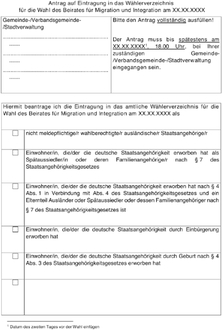 (5) Wird die Wahl des Beirats für Migration und Integration nicht im Wege der Briefwahl durchgeführt, sind die Wahlberechtigten spätestens am 21. Tage vor der Wahl zu benachrichtigen. Wahlscheine und Briefwahlunterlagen (Absatz 4) sind auf Antrag frühestens ab dem 34. Tag vor der Wahl zu erteilen.
