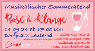 Der malerische Dorfplatz in Leuterod verwandelt sich in eine Bühne für einen außergewöhnlichen Abend. Unter dem Motto "Musikalischer Sommerabend – Rosé & Klänge" laden die Sängerinnen und Sänger der CHORona Malberg gemeinsam mit dem Chor VOCAhoLbach aus Großholbach zu einem stimmungsvollen Konzert mit chilligem Ausklang ein.