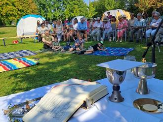 Am Sonntag feierten alle mit vielen weiteren Besucher:innen aus nah und fern einen Dankgottesdienst im Freien. Pfarrer Wolfgang Pax, der als alter KJGler sehr gerne gekommen war, um diesen Gottesdienst zu feiern, betonte die Bedeutung des Zeltes als Symbol für eine flexible, gastfreundliche Lebenseinstellung und Ausrichtung der Kirche.