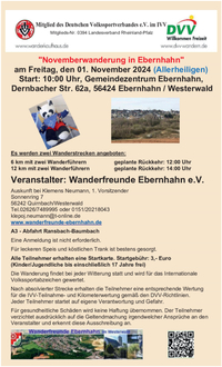 Am 27. Oktober planen die Wanderfreunde Ebernhahn eine Busfahrt nach Montenau, Belgien, um dort den 51. Internationalen Wandertag zu besuchen.