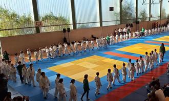 Ein feierlicher Einmarsch rundete den Start ab und nach dem gemeinsamen Aufwärmtraining konnten die Kämpfe auf vier Matten beginnen. Zuerst starteten die jüngsten Jahrgänge 2018-2019 sowie 2016-2017, später folgten die Jahrgänge 2014-2015.