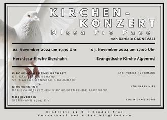 Aufführungstermine sind Samstag, 02.11.2024 um 19.30 Uhr in der Pfarrkirche Siershahn und Sonntag, der 03.11.2024 um 17 Uhr in der evangelischen Kirche Alpenrod.