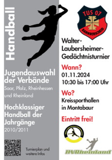 Walter Laubersheimer war als Vize-Präsident für Organisation und Entwicklung im Pfälzischen Handball-Verband zuständig und auch Frauenwart im Südwestdeutschen Handball-Verband. Laubersheimer verstarb 2009 auf der Heimfahrt von einem Jugendspiel bei einem Verkehrsunfall. Ihm zu Ehren findet dieses Gedächtnis-Turnier für Jugend-Auswahlteams der Verbände Saar, Pfalz, Rheinhessen und Rheinland statt; Veranstalter in diesem Jahr ist der TuS 07 Bannberscheid. (rh)