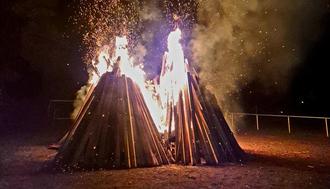 Am Ziel angekommen, erwartete die Besucherinnen und Besucher ein großes Martinsfeuer, das hell in die Nacht strahlte und die Kinderherzen erwärmte.