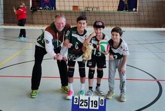 Mit von der Partie waren Altun Kaan, Bennet Dilly und Anton Faber, der erst Mitte Oktober mit Volleyball startete, aber in den wöchentlich zwei Trainingseinheiten bei Trainer Erwin Hausen und Co-Trainer Pablo Ferdinand bereits viel gelernt hat. Jeder Satz wurde klar gewonnen (25:18; 25:16; 25:19). Ein toller Einstieg der Spieler der Jahrgangs 2016, 2015 und 2014.
