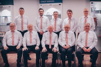 Stehend: Uli Heibel (Staudt, Schriftführer), Olli Filipic (Wirges, 1. Vorsitzender), Raymond Wolf (Wirges), Klaus Kober (Breitenau), Wilfried Knöll (Ellenhausen). Davor sitzend: Klaus Henkes (Wirges), Alfred Luksch (Wirges), Paul Neuroth (Helferskirchen), Dieter Griesar (Wirges), Michael Hommrich (Wirges, Kassierer). Auf dem Foto leider fehlend: Alexander Bruchof (Dernbach), Hermann Müller (Wirges), Frank Pehl (Freirachdorf). Ergänzende Informationen: zurzeit singen im 1. Tenor des Wirgeser Frohsinns 12 Männer aus 6 Ortschaften mit einem Altersdurchschnitt von etwa 69 Jahren. Der Anteil der 1. Tenöre am Gesamtchor beträgt ungefähr 22 Prozent. Der Register-Oldie ist unser lieber Paul (Jahrgang 1939), das Register-Nesthäkchen ist der Vorstandsvorsitzende und "Vereinschef" Olli (Jahrgang 1973). Weitere Infos zu unserer "Mannschaft" finden sich auf unserer Internetseite unter: https://frohsinn-wirges.de/saenger. Besucht gerne auch unsere SocialMedia-Präsenzen bei Facebook, Instagram und YouTube. Erreichbar sind wir via E-Mail unter svfrohsinnwirges@web.de oder per Telefon unter der Rufnummer 0 26 02 / 10 67 936.