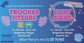 ihr habt am 15. oder 21. Februar noch nichts vor? Dann feiert mit uns zusammen unsere "Trockensitzung" oder die "Light-Night".