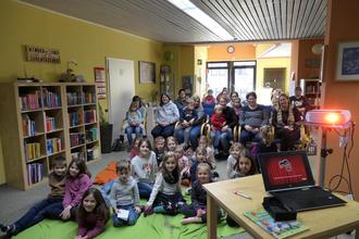 Die Kinder hörten der Geschichte bei Kinoatmosphäre gespannt zu und konnten auch ihre eigenen Märchenerfahrungen beitragen.
