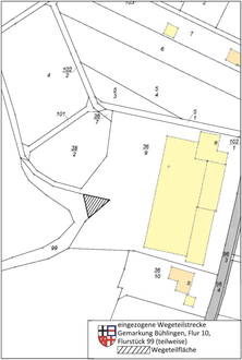 Das in der Gemarkung Bühlingen, Flur 10, Flurstück 99 (teilweise), gelegene Wegeteilstück wird hiermit eingezogen. Die einzuziehende Wegestrecke ist aus dem beiliegenden Lageplan, der Bestandteil dieser Satzung ist, ersichtlich.