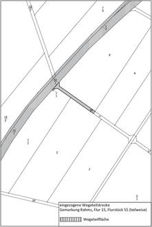 Das in der Gemarkung Rahms, Flur 15, Flurstück 55 (teilweise), gelegene Wegeteilstück wird hiermit eingezogen. Die einzuziehende Wegestrecke ist aus dem beiliegenden Lageplan, der Bestandteil dieser Satzung ist, ersichtlich.