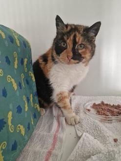 Am Montag, 07. April 2025, ist am Nachmittag in Buchholz-Krautscheid eine weibliche Katze mit dreifarbigem Fell im Alter von etwa 13 Jahren zugelaufen.