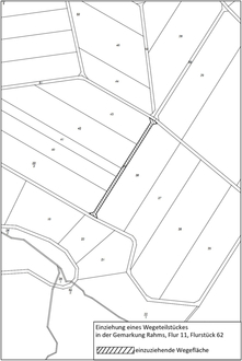 Der Ortsgemeinderat hat in seiner Sitzung am 15.05.2025 beschlossen, für das o.g. Wegestück das Wegeeinziehungsverfahren einzuleiten. Zur Information ist ein Lageplan mit Kennzeichnung der einzuziehenden Fläche mit abgedruckt.