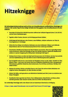merksam. Hier werden Tipps für das richtige Verhalten bei Hitze gegeben. Das Umweltbundesamt rät unter