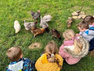 Die Kinder durften zusehen und hautnah miterleben wie aus Hühnereiern Küken entstehen, sie sind mit zwei Hunden spazieren gegangen und haben ein Kita-Kind Zuhause besucht, das eigene Hühner hat.
