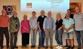 Erweiterte SPD-Fraktion im VG-Rat berät über SPD-Initiativen. Vlnr.: Jörn Claus, Günter Behr, Helga Ulama, Petra Paffrath, Hans-Werner von Lovenberg, Thomas Stumpf, Steffi Klör, Frank Clasen, Georg Hewelt und Rolf Kahmann.