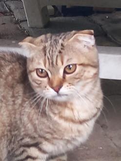 Am Dienstag, 29.07.2025, ist in Asbach-Dinspel, eine Scot-Fold-Katze (Faltohr-Katze) mit einer hellbraun getigerten Fellfärbung im Alter von etwa 5 Monaten zugelaufen.
