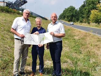 v.l.n.r.: Sebastian Schuster (Landrat Rhein-Sieg-Kreis), Otto Neuhoff (Bürgermeister Stadt Bad Honnef), Martin Buchholz (Ortsbürgermeister Windhagen) auf der geplanten Wege-Trasse.