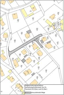 Der Ortsgemeinderat hat in seiner Sitzung am 02.09.2024 beschlossen, für die o.g. Wegeteilstücke das Wegeeinziehungsverfahren einzuleiten. Zur Information ist ein Lageplan mit Kennzeichnung der einzuziehenden Fläche mit abgedruckt.