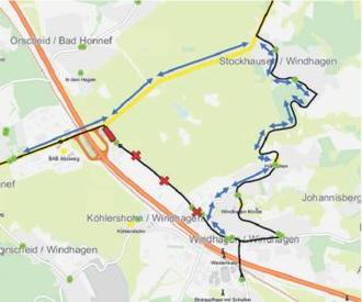 Fahrgäste werden an die Haltestelle „Windhagen Wirtgen“ verwiesen.
