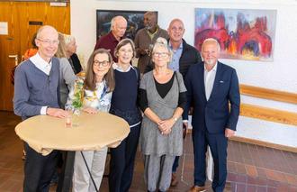 Pfarrer Bernd Peters, Ingrid Becker, Ursula Schulze, Martin Buchholz und Lothar Köhn bei der Eröffnung der Kunstausstellung im Bürgerhaus Windhagen