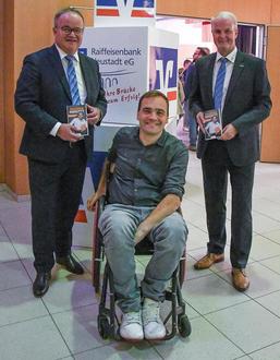 „Ich habe damals gehofft, dass sich die Umstände ändern, damit ich mich nicht ändern muss“, berichtete Sebastian Wächter in Neustadt. Ein langer und schwieriger Prozess hat ihn am Ende dazu gebracht, die Umstände zu akzeptieren und sich selbst zu ändern. Es war ein Wandel im Kopf, der ihn wieder zum Gestalter seines eigenen Lebens machte: Seitdem schaut er nicht mehr auf die 95 Prozent, die nicht mehr funktionieren, sondern auf die 5 Prozent und fragt sich: Was geht damit? Eine ganze Menge, wie die Gäste der Raiffeisenbank erfuhren: Er hat viele Jahre leidenschaftlich Rollstuhl-Rugby in der Bundesliga gespielt, ist inzwischen glücklich verheiratet und hat seinen Job als Aktienanalyst an den Nagel gehängt. Inzwischen ist er ein gefragter Redner und berät zahlreiche Unternehmen bei Veränderungsprozessen. Raiffeisenbank-Vorstand Martin Leis war nach dem Vortrag sichtlich bewegt: „Es war ein sehr inspirierender und Mut machender Vortrag.“ Ähnlich erging es seinem Kollegen Konrad Breul, der sich im Namen der Zuhörer herzlich bedankte.