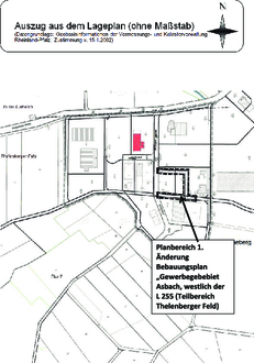 Der Gemeinderat der Ortsgemeinde Asbach hat am 01. September 2022 in öffentlicher Sitzung die 1. Änderung des Bebauungsplanes Gewerbegebiet Asbach, westlich der L 255 (2. Erweiterung Teilbereich Thelenberger Feld als Satzung gemäß § 10 Absatz 1 BauGB beschlossen. Bestandteil der Satzung ist die Planurkunde und die textlichen Festsetzungen. Eine Begründung ist beigefügt. Die beschlossene Satzung sowie die Bebauungsplanurkunde mit den textlichen Festsetzungen wurden am 26.09.2022 ausgefertigt.