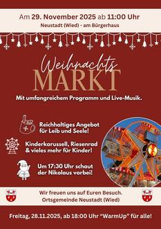 Am Samstag, 29.11.2025, ab 11:00 Uhr lädt die Ortsgemeinde Neustadt (Wied) wieder zum traditionellen Weihnachtsmarkt rund um das Bürgerhaus ein. Besucherinnen und Besucher erwartet ein stimmungsvolles Programm mit Live-Musik, vielen liebevoll gestalteten Ständen und einem Angebot, das sich sehen lassen kann.