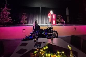 Zum Abschluss stattete der kölsche Nikolaus - erneut eindrucksvoll verkörpert von Andreas Brehm - der Feier einen Besuch ab. In diesem Jahr traf er sogar im Beiwagen des Motorrads seines Engels ein.