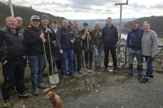 Einige der Helfer beim Arbeitseinsatz an der Edmundhütte. Auch Hüttenwirtin Kerstin Thran (rechts) begutachtete die Arbeiten und brachte etwas zur Stärkung mit